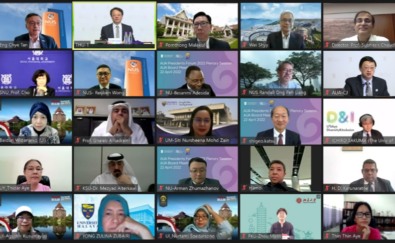 北京时间4月22日下午,2022年亚洲大学联盟(Asian Universities Alliance,简称AUA)2022年理事会会议在线举行。来自联盟15所大学的校长齐聚云端,回顾联盟成就,共商未来发展。