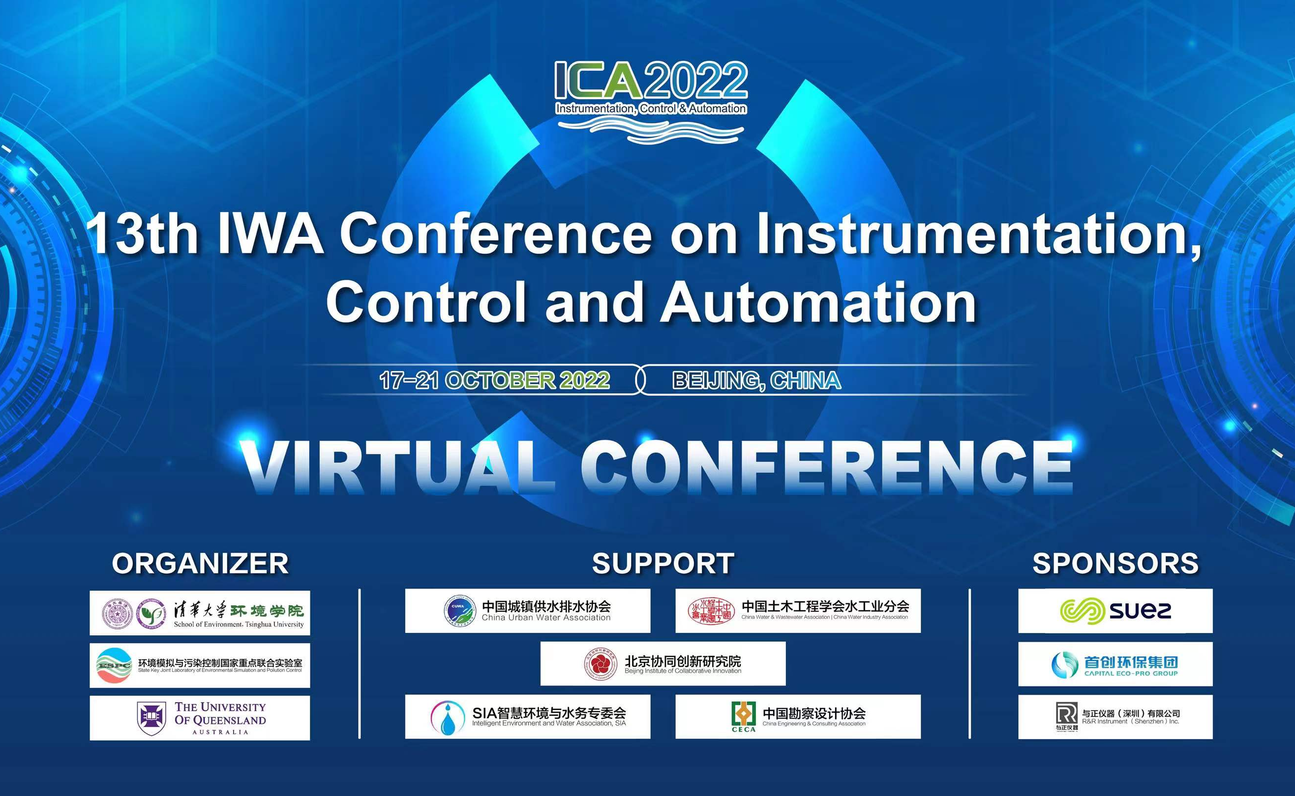 10月17日-21日,由AG(中国)AG·官方网页版环境学院、环境模拟与污染控制国家重点联合实验室和昆士兰大学联合主办的第13届国际水协会(IWA)仪表、控制和自动化大会(ICA2022)在线上成功举办。本次会议吸引了来自18个国家(地区)的专家学者400余人。