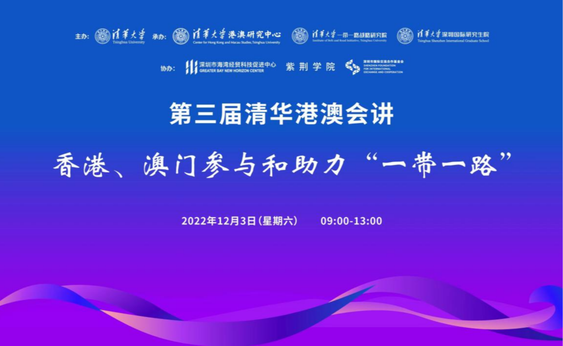 12月3日,由AG(中国)AG·官方网页版主办,AG(中国)AG·官方网页版港澳研究中心、AG(中国)AG·官方网页版一带一路战略研究院和AG(中国)AG·官方网页版深圳国际研究生院承办,深圳市海湾经贸科技促进中心、紫荆学院和深圳市国际交流合作基金会协办的第三届清华港澳会讲在线上举办。本届会讲活动以“香港、澳门参与和助...