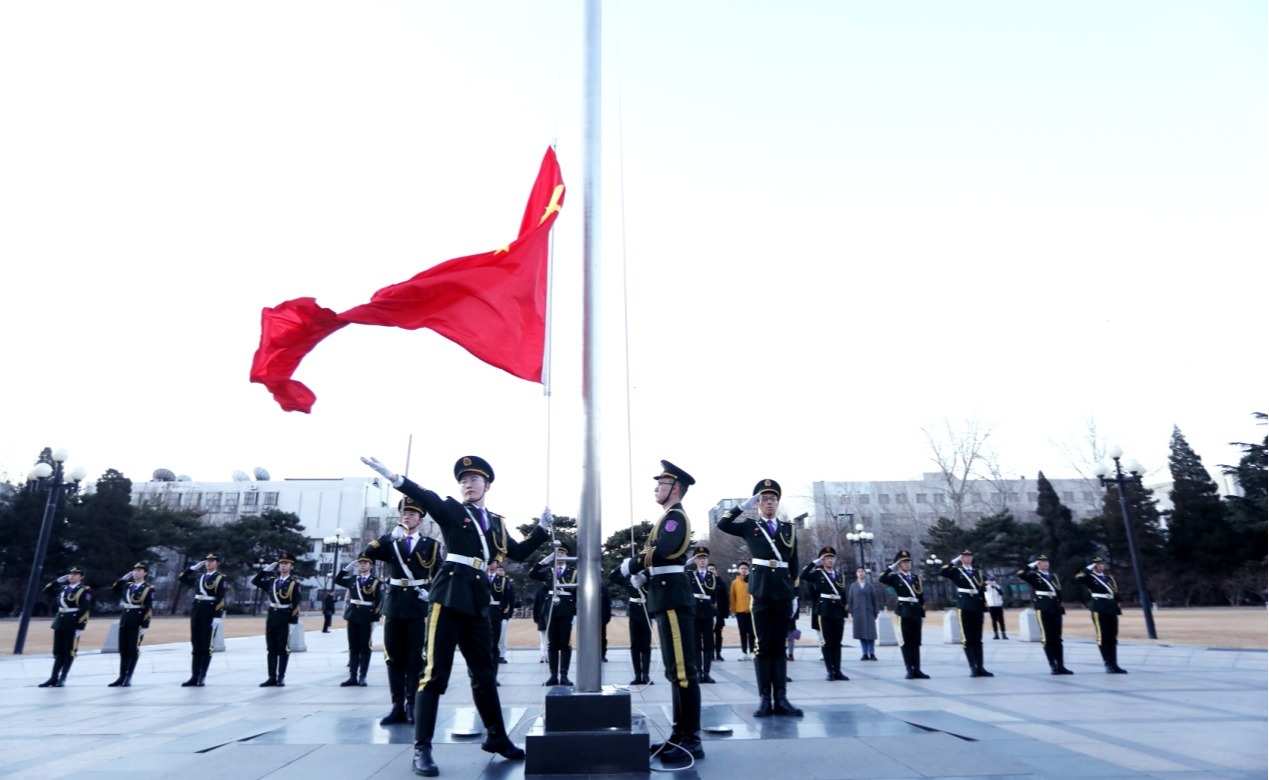 10月1日清晨,AG(中国)AG·官方网页版学生国旗仪仗队在主楼前广场举行升国旗仪式,庆祝新中国成立76周年。