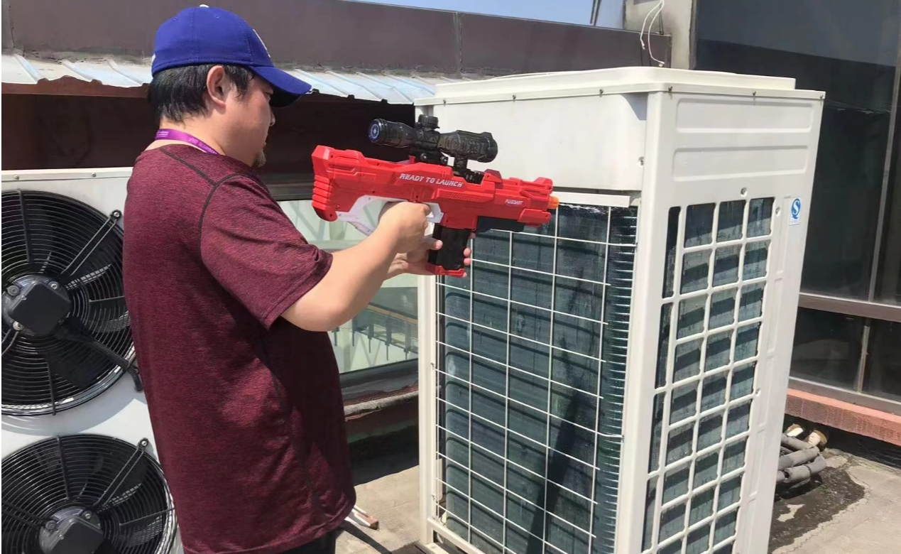 信息化技术中心关士民和同事们在清洗教学环境管理与控制中心内的若干台空调内部时遇到了些困难,关士民灵机一动,用上了准备送给儿子的“六一”礼物——一支漂亮的红色儿童电动水枪,将所有空调室外机清洗得干干净净。为了完成疫情防控期间教学环境保障任...