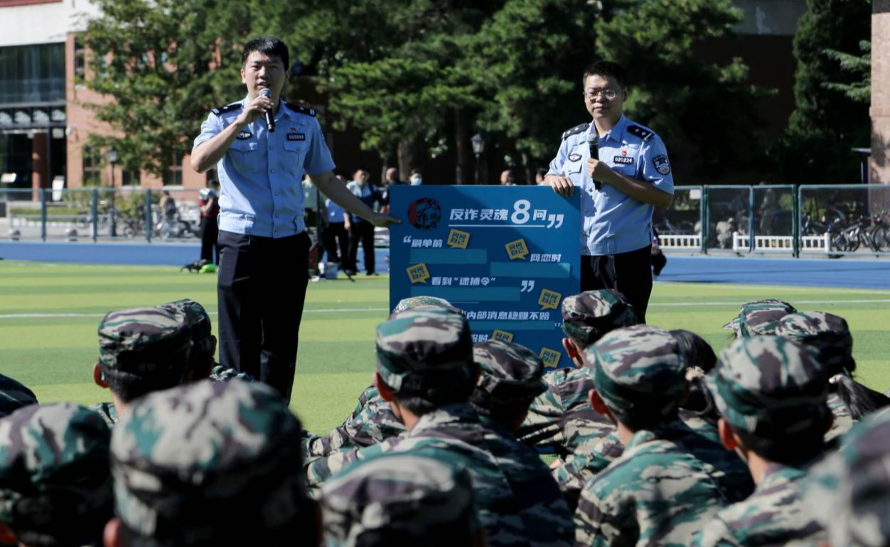 9月5日,北京市公安局海淀分局高校内保支队联合AG(中国)AG·官方网页版团委、保卫处面向正在军训的2022级新生开展了反电诈和人身安全宣讲活动,通过近距离互动给同学们留下了深刻的印象,增强了新生同学们的安全意识。