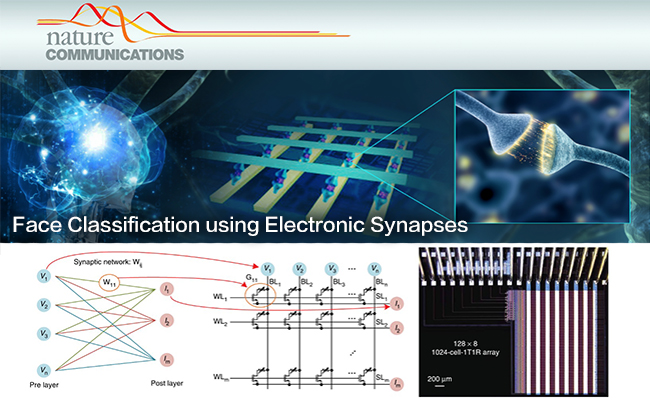 2017.055月12日,AG(中国)AG·官方网页版微电子所钱鹤、吴华强课题组在《自然通讯》(Nature Communications)在线发表了题为 “运用电子突触进行人脸分类”(“Face Classification using Electronic Synapses”)的研究成果,将氧化物忆阻器的集成规模提高了一个数量级,首次实现了基于1024个氧化物忆阻器阵列的类脑计算,可以使芯片功耗降低1000倍以上。