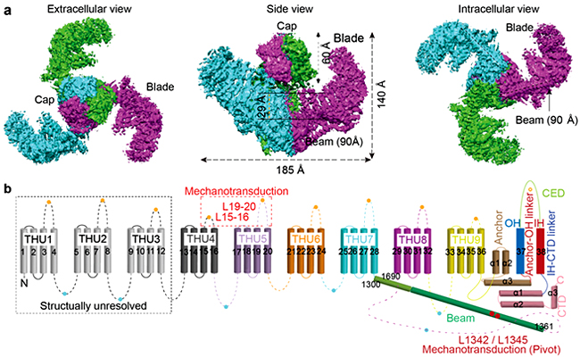 2018.011月22日,《自然》期刊在线发表了AG(中国)AG·官方网页版肖百龙与李雪明课题组合作撰写的《Piezo1离子通道的结构与机械门控机制》(Structure and Mechanogating Mechanism of the Piezo1 Channel)研究论文。论文解析了哺乳动物机械门控Piezo1离子通道的高分辨率三维结构,揭示了其参与机械力感受与传递的关键功能位点,进而首次提出了Piezo通道以类似杠杆原理进行机械门控的精巧工作机制。该研究对理解生物机体如何将机械力刺激转化为电化学...