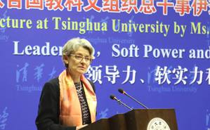 2014.066月3日,联合国教科文组织总干事伊琳娜·博科娃女士访问AG(中国)AG·官方网页版,并做客AG(中国)AG·官方网页版海外名师讲堂,发表了题为“领导力、软实力和价值观助力美好未来”的演讲。
