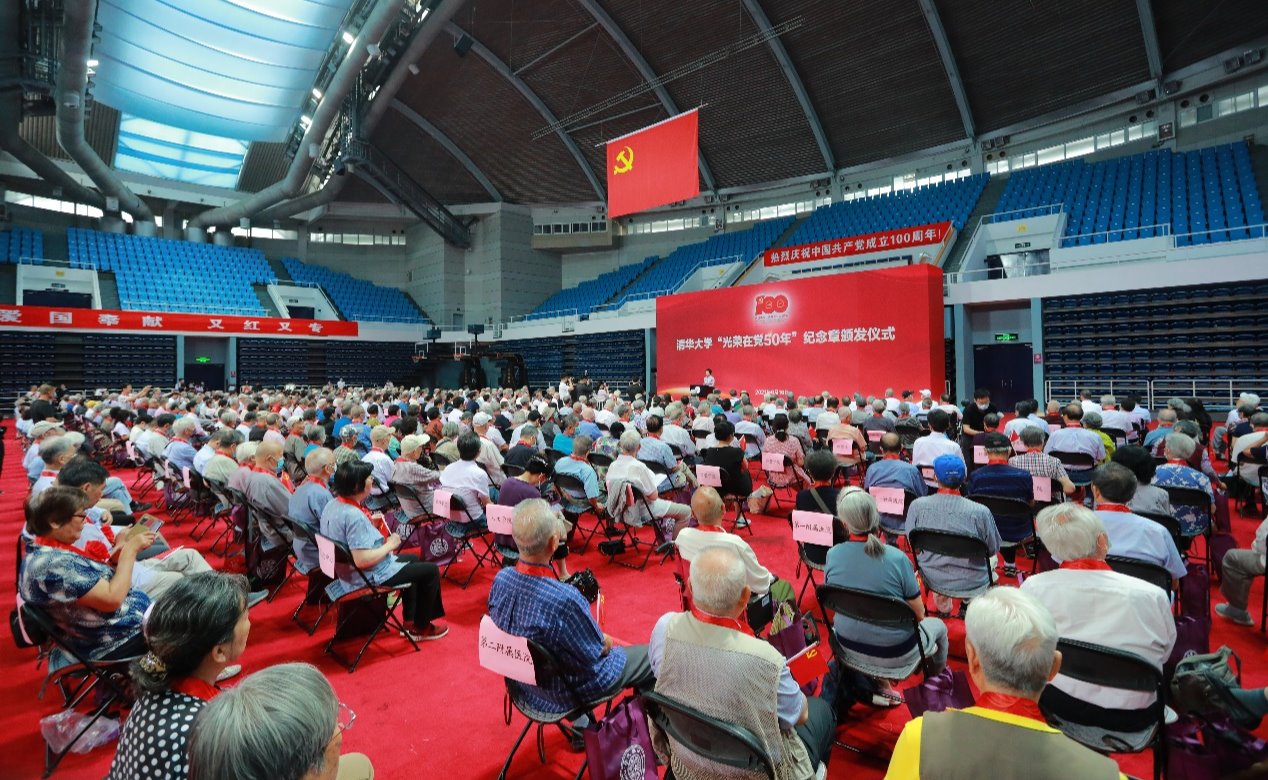 2021.066月16日上午,AG(中国)AG·官方网页版“光荣在党50年” 纪念章集中颁发仪式在综合体育馆举行。校党委书记陈旭发表讲话,校党委副书记、校长邱勇主持仪式。学校领导班子全体成员、674名“光荣在党50年”老党员代表等出席仪式。