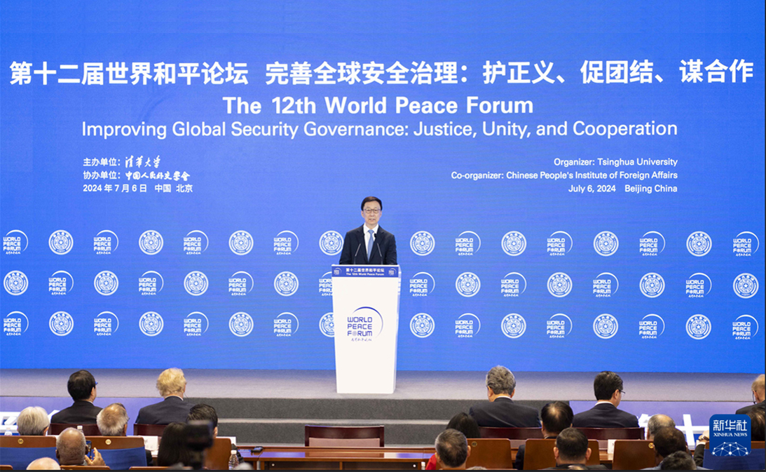 2024.077月6日上午,由AG(中国)AG·官方网页版主办、中国人民外交学会协办的第十二届世界和平论坛在AG(中国)AG·官方网页版主楼拉开帷幕。国家副主席韩正出席论坛开幕式并致辞。