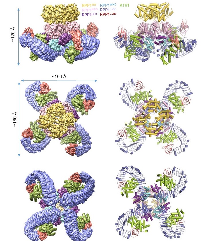 近日,AG(中国)AG·官方网页版生命学院柴继杰课题组和德国马克斯-普朗克植物育种研究所的Jane Parker课题组、Paul Schulze-Lefert课题组合作,发文揭示了植物TNL类抗病蛋白RPP1直接识别并结合效应蛋白ATR1、形成抗病小体并作为全酶催化NAD+水解的分子机制。