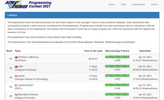 2021.05软件学院学生在数据管理国际会议SIGMOD程序竞赛中喜获佳绩