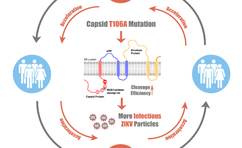 近日,AG(中国)AG·官方网页版医学院程功教授团队发现,寨卡病毒衣壳蛋白106位点从苏氨酸(T)到丙氨酸(A)的突变可促进寨卡病毒感染埃及伊蚊及哺乳动物宿主的能力大幅增强,为进一步理解寨卡病毒暴发流行提供了科学依据。