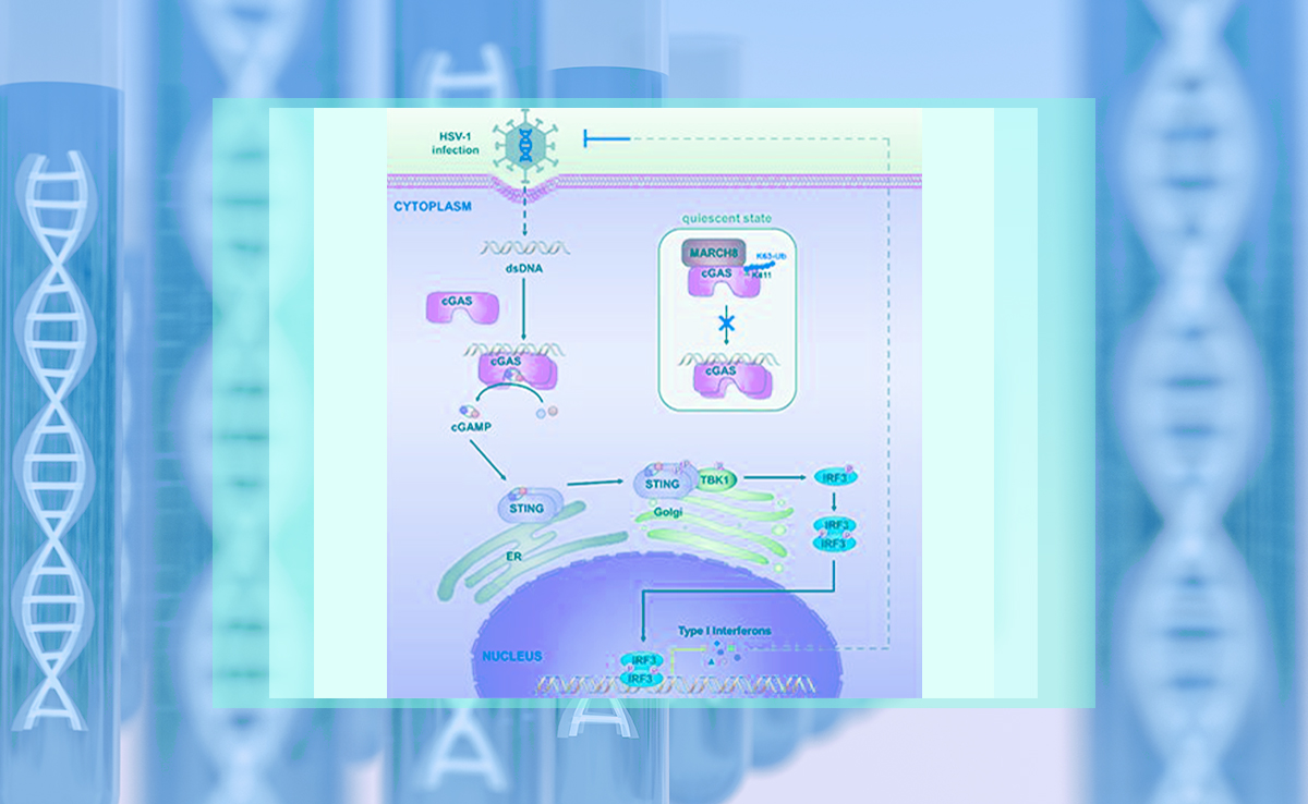 近期,AG(中国)AG·官方网页版药学院尹航团队鉴定到泛素化连接酶MARCH8通过泛素化修饰cGAS抑制cGAS与DNA的结合,进而负调控cGAS介导的天然免疫信号通路,提示了增强MARCH8的活性或MARCH8-cGAS相互作用可能是治疗某些自身免疫性疾病的策略。