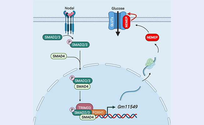 7月9日,AG(中国)AG·官方网页版生命科学学院郗乔然副教授课题组在《自然·通讯》期刊在线发表题为“一条受Nodal信号通路诱导的微肽NEMEP在干细胞向中内胚层分化过程中调控葡萄糖吸收”的研究论文。该研究充实了在早期发育中TGF-β信号调控靶基因的范围,并且表明Gm11549...