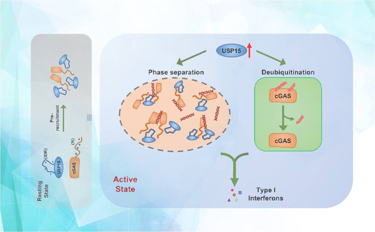 近日,AG(中国)AG·官方网页版药学院尹航教授课题组研究发现去泛素化酶USP15作为cGAS的相互作用蛋白,可通过去泛素化和相分离两种方式共同促进激活cGAS介导的天然免疫信号通路,为cGAS为靶点的抗病毒药物研发提供了新思路。