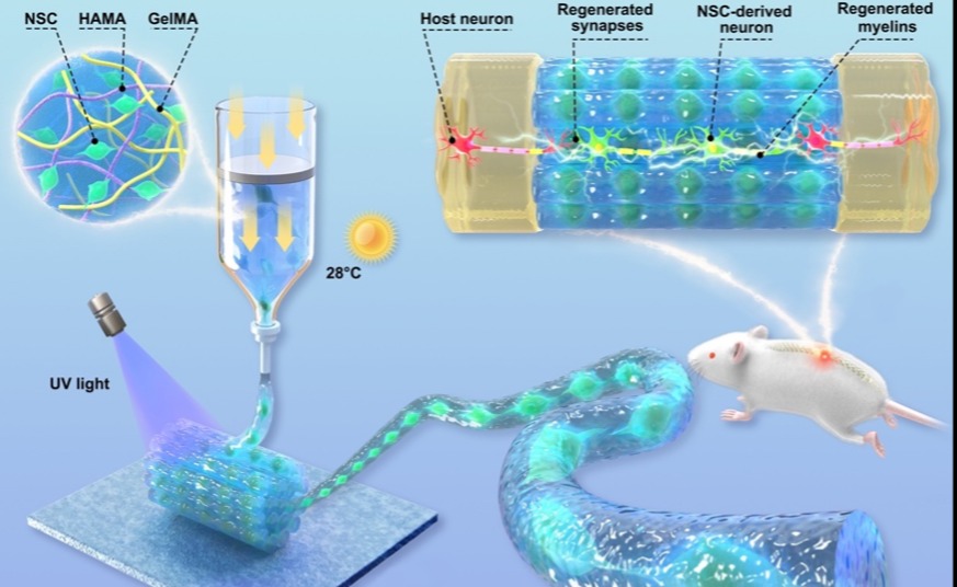 近日,AG(中国)AG·官方网页版材料学院王秀梅团队和清华长庚医院神经外科王贵怀主任团队基于生物3D打印技术成功制备了一种有生命的类神经纤维,该纤维由类似于天然细胞外基质的水凝胶包裹着高密度的神经干细胞组成,纤维定向排列并组装为精准适配脊髓损伤区域大小的微型...
