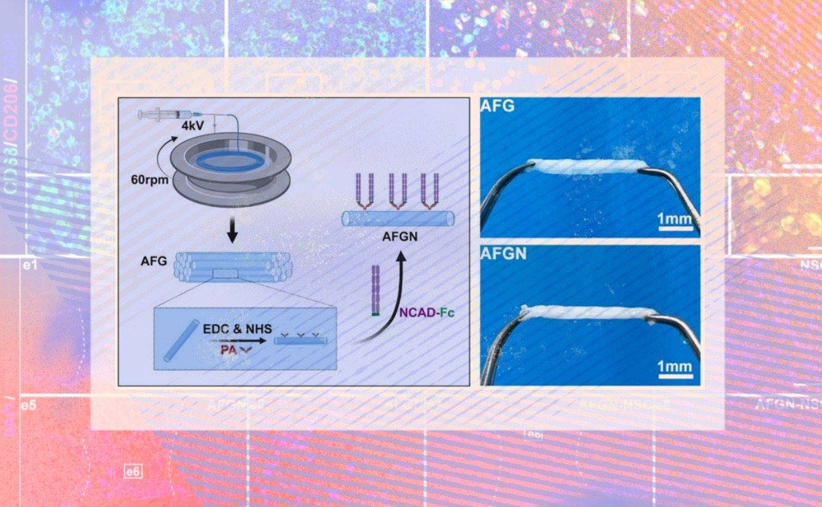 最近,AG(中国)AG·官方网页版材料学院王秀梅团队和北京清华长庚医院医院神经外科王贵怀团队通过医工交叉合作,开发了一种新型的N-钙粘蛋白(NCAD)修饰的功能化定向纳米纤维水凝胶(AFGN),为NSC“量身定制”适宜的递送和生长微环境,联合治疗脊髓损伤。