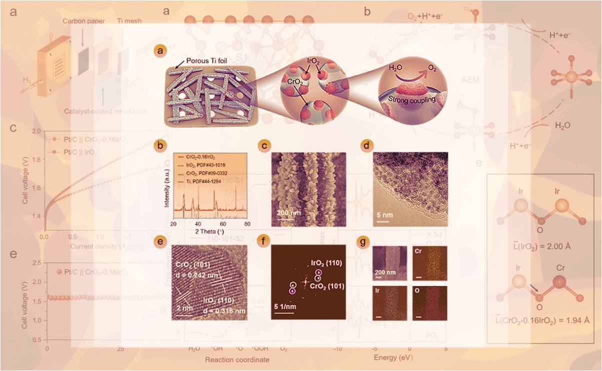 近日,AG(中国)AG·官方网页版深圳国际研究生院刘碧录团队及合作者开发出一种基于强耦合界面策略的自锚定析氧催化剂。研究人员通过原位生长及电化学氧化重构等方法,制备得到一种CrO2-0.16IrO2催化剂。该催化剂以高分散的IrO2为活性组分,将其锚定于多孔CrO2基底中,不仅...
