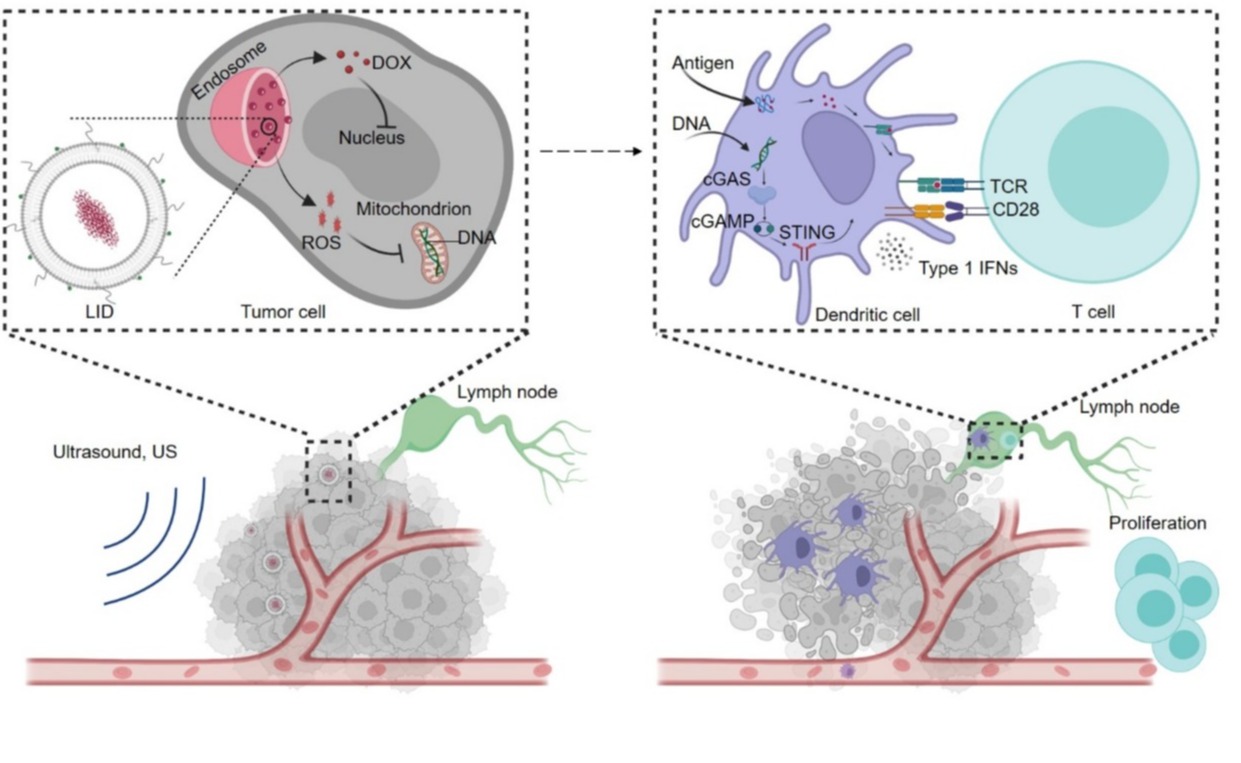 2023.07药学院蒯锐课题组利用超声波响应性的低剂量阿霉素脂质体激活宿主STING通路增强抗肿瘤免疫应答