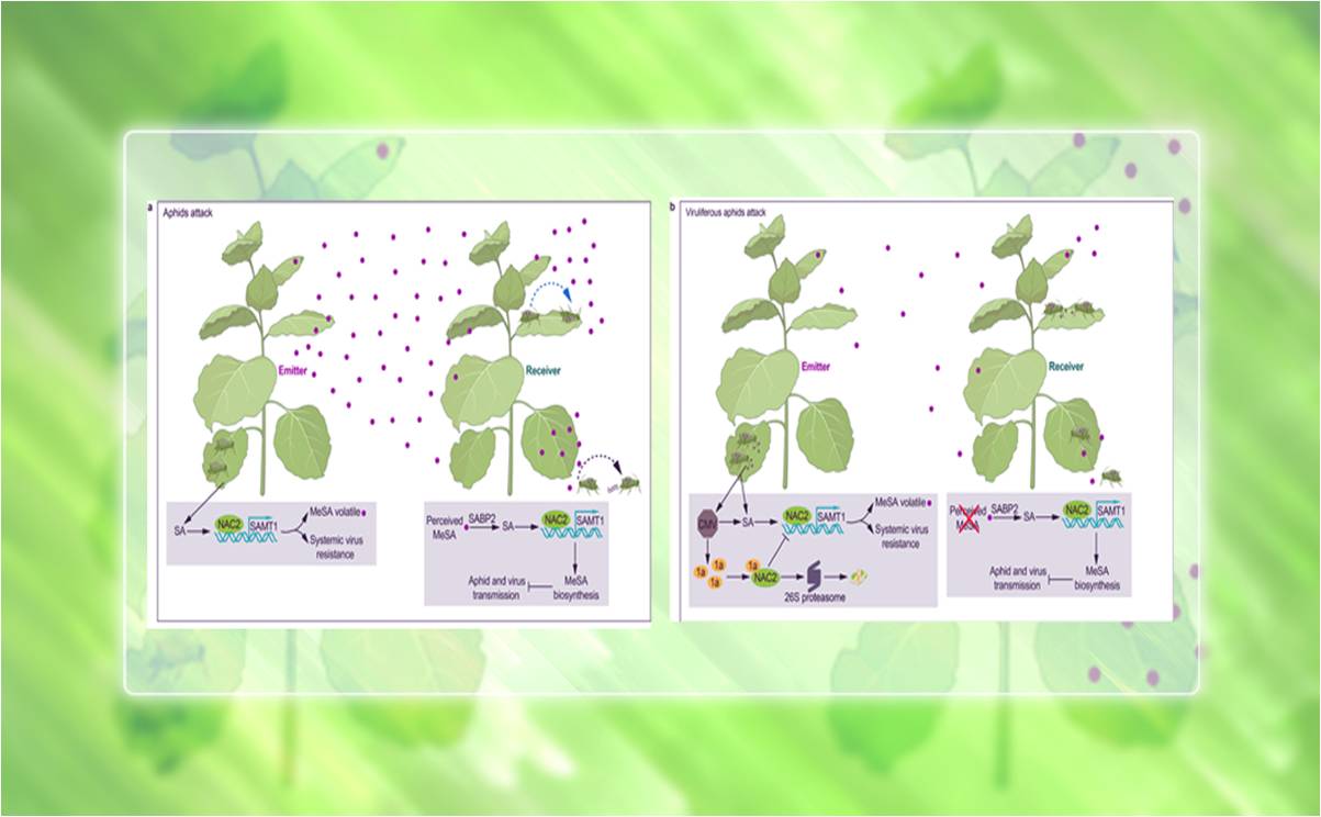 2023.09生命学院刘玉乐课题组揭示水杨酸甲酯介导的植物气传性免疫的分子机制及病毒的反防御机制