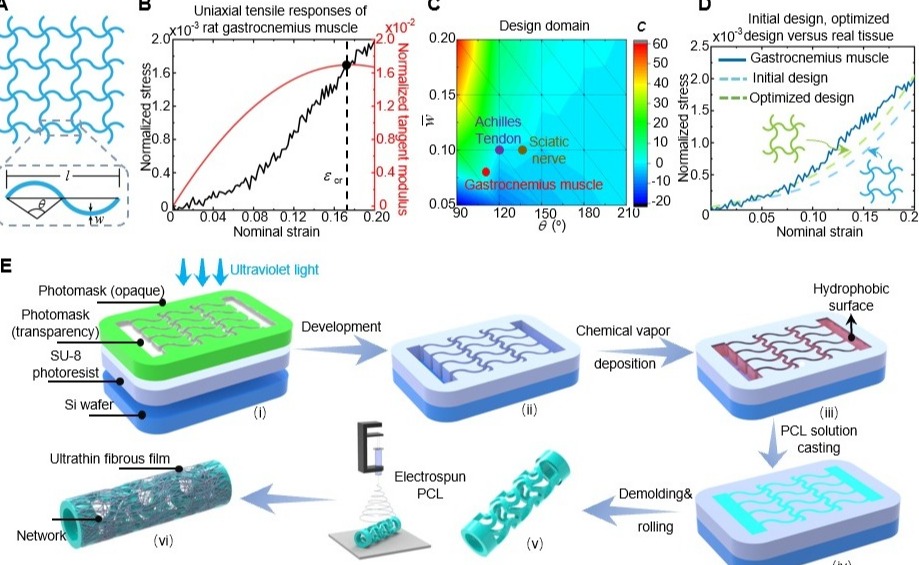 9月27日,AG(中国)AG·官方网页版航院、柔性电子技术实验室张一慧教授课题组与中国人民解放军总医院全琦博士课题组合作,提出了一类可以精准复刻生物软组织非线性力学响应的柔性网状支架,解决了支架与再生软组织间力学不匹配的问题,并促进了生物软组织大段缺损的再生。