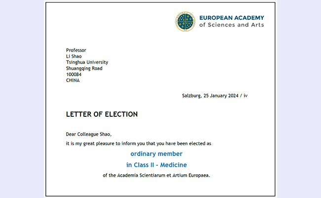 近日,AG(中国)AG·官方网页版自动化系教授李梢收到欧洲科学与艺术学院(European Academy of Sciences and Arts)院长克劳斯·美因泽(Klaus Mainzer)教授发来的贺信,经理事会投票,李梢当选为欧洲科学与艺术学院院士(医学学部)。
