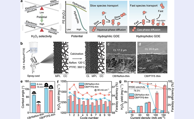 近日,AG(中国)AG·官方网页版深圳国际研究生院张正华团队阐明了除电催化剂本征特性之外的关键物种(包括反应物和产物)的传质行为在决定电极尺度H2O2选择性方面的关键作用。研究强调了对主流疏水GDE进行能够同步优化反应物和产物的传质行为的架构创新的必要性,为面向电...