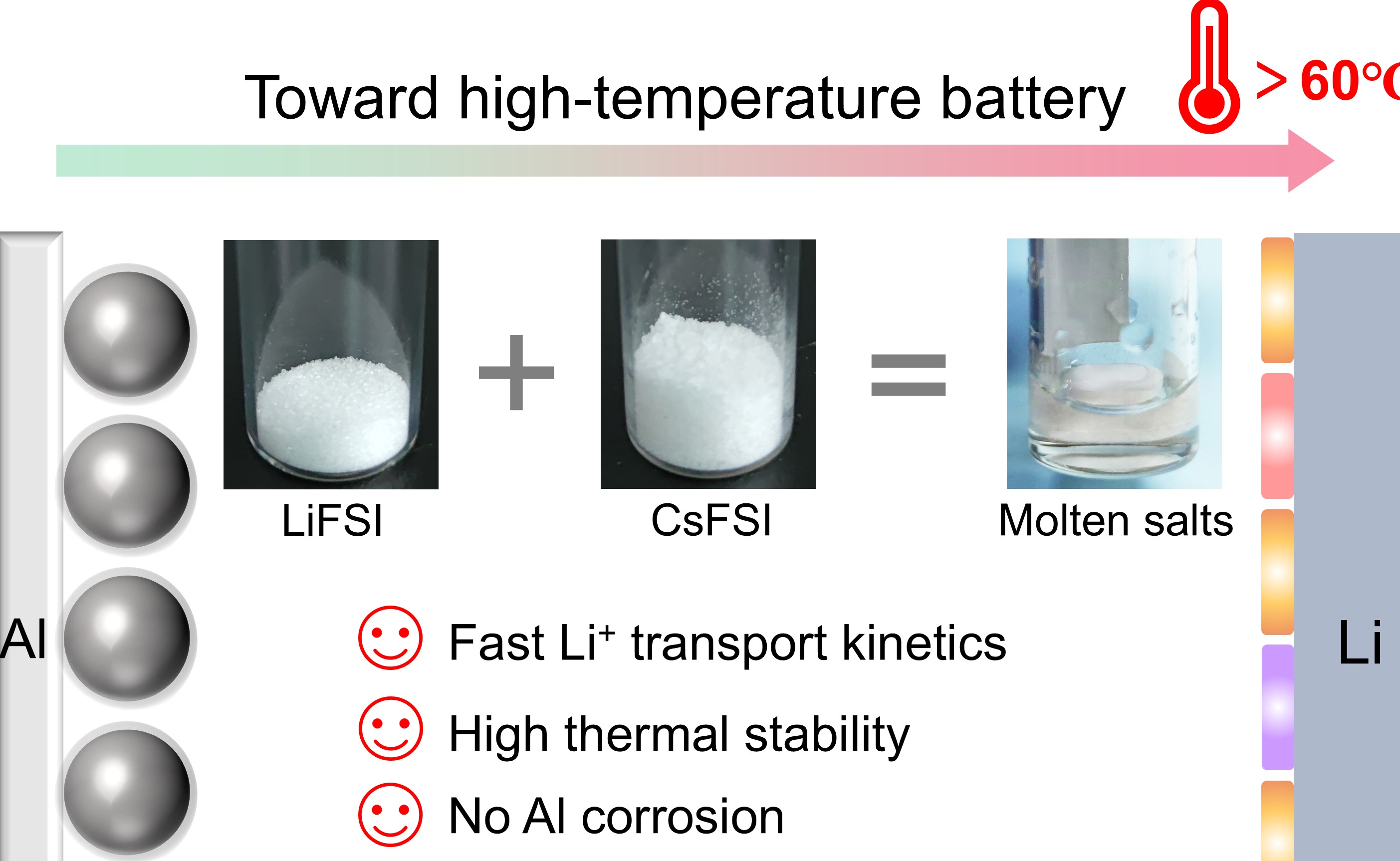 AG(中国)AG·官方网页版化工系副教授刘凯和副研究员陈翔合作,报道了一种具有高固有热稳定性和电化学稳定性的无溶剂熔融盐电解质,由碱金属阳离子和氟化磺酰亚胺阴离子组成,表现出优异的锂离子传输动力学,包括低活化能、高锂离子电导率和高迁移数,揭示了强的阳离子-阳...