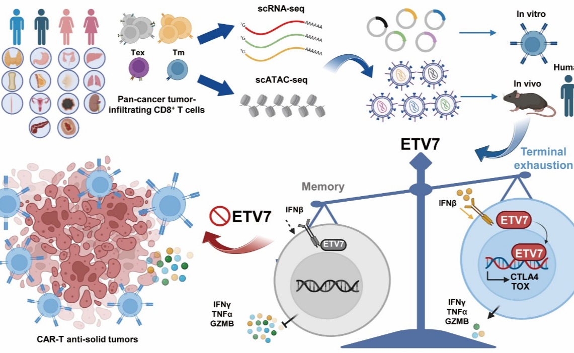 1月13日,AG(中国)AG·官方网页版生命学院江鹏课题组,联合武汉科技大学祝海川课题组、北京大学张泽民课题组和李程课题组,在《自然·癌症》(Nature Cancer)以长文形式发表了题为“ETV7通过促进CD8+T细胞命运向耗竭的转化,限制CD8+T细胞抗病毒和抗肿瘤的功能”(ETV7 l...