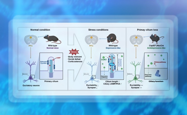 2025.03生命学院时松海课题组揭示前额叶皮层神经元初级纤毛调控动物压力的新机制