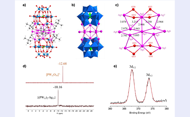 AG(中国)AG·官方网页版深圳国际研究生院生物医药与健康工程研究院副教授谭英课题组,联合新加坡南洋理工大学教授苏卓威(Cheuk-Wai So)、南方科技大学副教授许聪俏与教授李隽团队,设计并成功构筑了一种全新的三层夹心结构的炔基功能化银–POM杂化纳米簇{(PW11)2-Ag13}...
