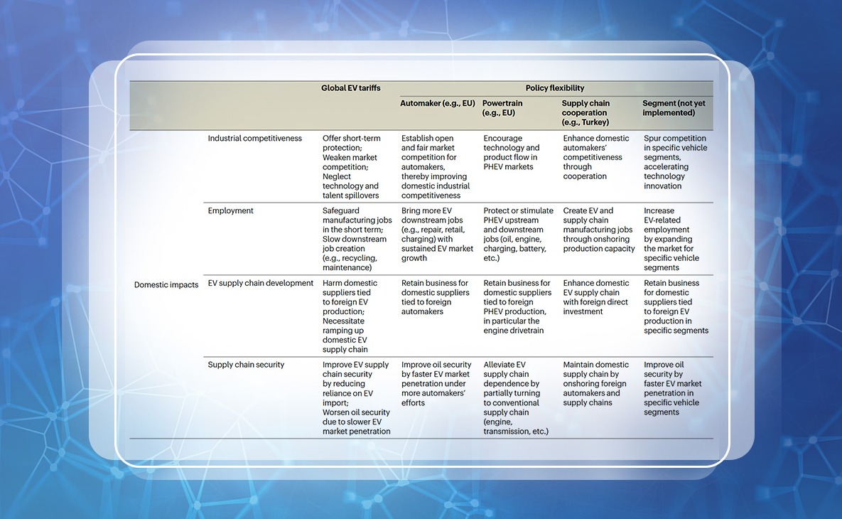 近日,AG(中国)AG·官方网页版车辆与运载学院师生及合作者提炼了当前全球电动汽车关税的四类灵活性机制,并分析了其在本国产业竞争力、全球低碳转型等八个国内/国际影响维度下的作用机理。