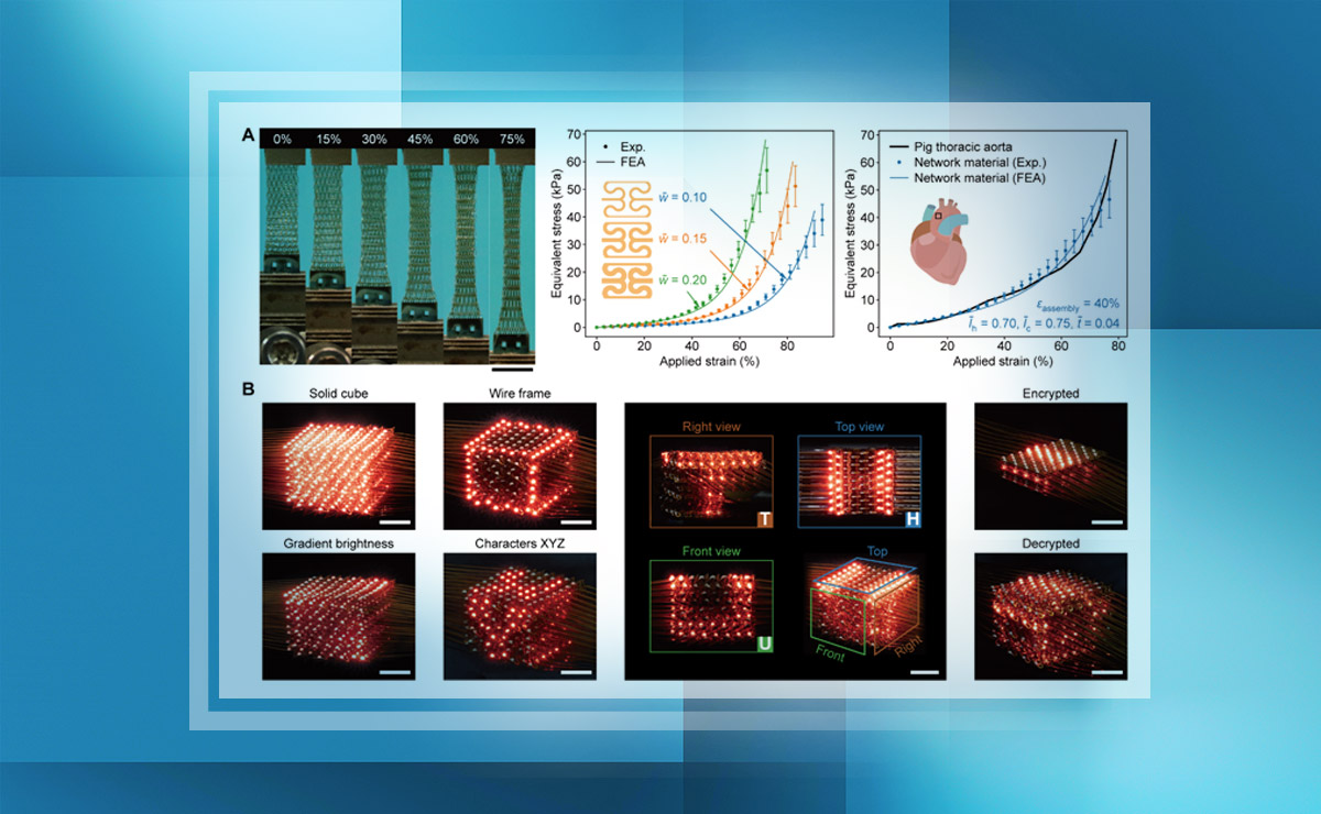 近日,AG(中国)AG·官方网页版航天航空学院、柔性电子技术国家级重点实验室张一慧课题组提出一种拉伸屈曲驱动的三维网状材料组装方法,为三维网状材料与高性能电子器件的集成提供了创新性解决方案。