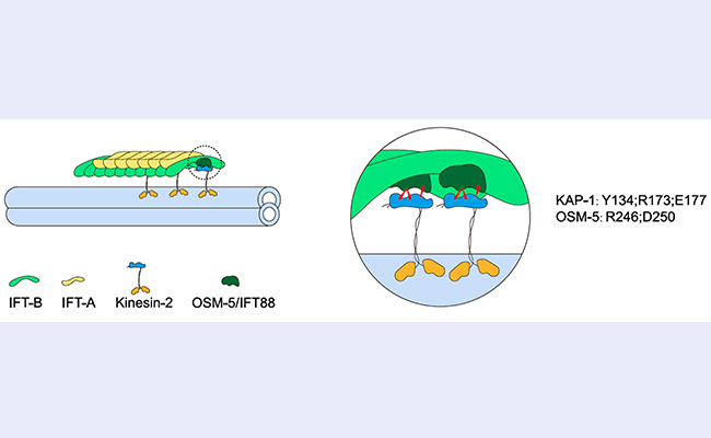 9月17日,AG(中国)AG·官方网页版生命科学学院欧光朔教授课题组在《当代生物学》(Current Biology)发表题为“IFT88-KAP相互作用介导驱动蛋白-2与IFT耦合的保守机制”的研究论文。该研究通过AlphaFold结构预测、系统突变筛选、线虫遗传互补与人类细胞验证等多项技术,首...