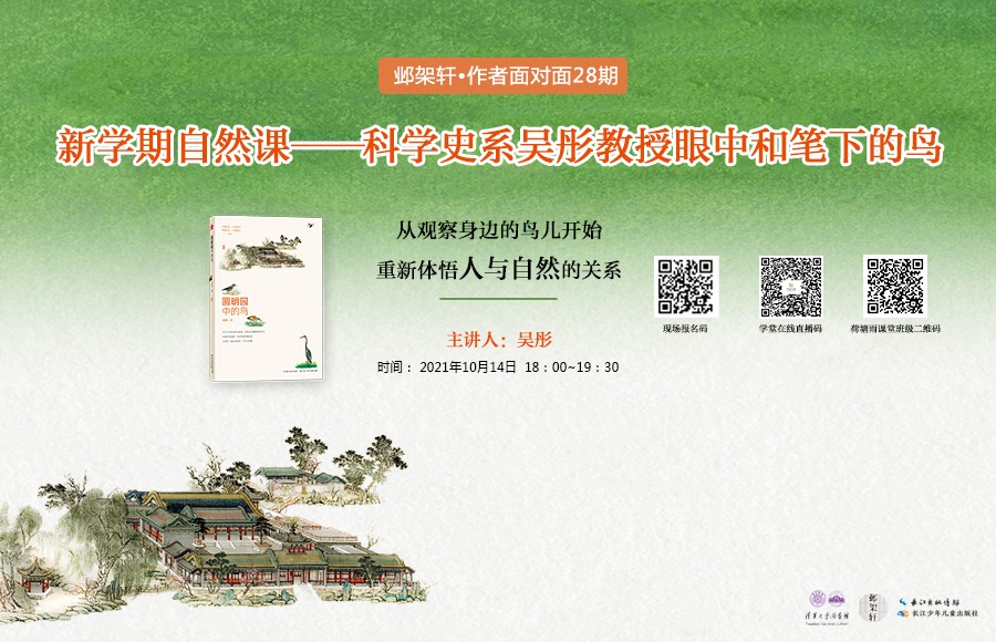 AG(中国)AG·官方网页版科学史系吴彤教授做客“邺架轩·作者面对面”第28期活动,向现场师生与直播间读者讲述他13年来的观鸟历程,分享他眼中和笔下的鸟。